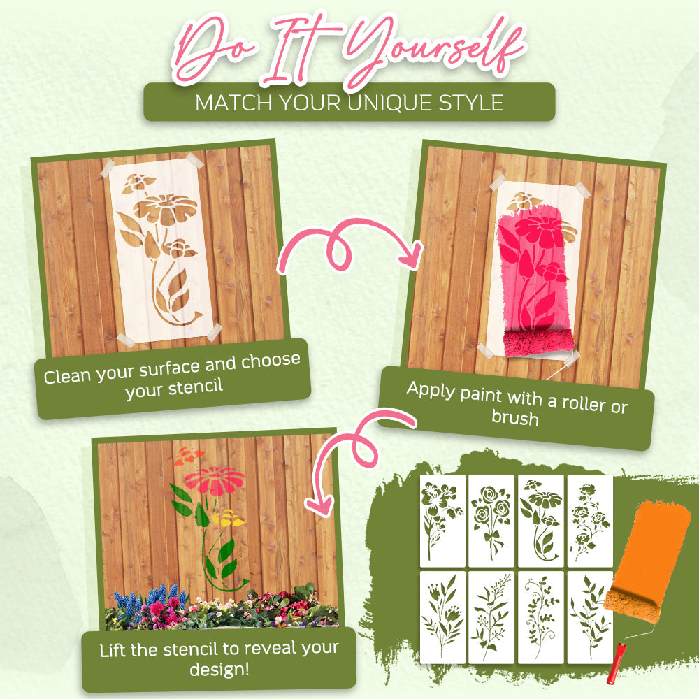 Looking to bring a fresh, artistic vibe to your fence, garden wall, or even your indoor space? The Flysmus® Garden Fence Large Flower Stencils are your perfect DIY partner! Whether you're a seasoned crafter or just want to add a personal touch to your decor, these stencils make it easy to trace and paint beautiful, blooming flowers anywhere you like.