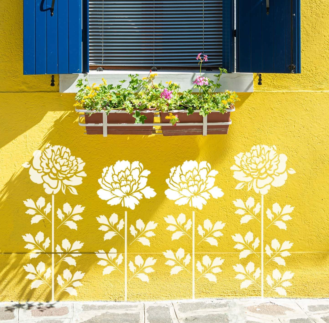 Unleash your creativity using your favorite type of paint—acrylic, latex, stencil cream, fabric paint, or glaze. Use a foam roller or stencil brush to bring your floral vision to life. Simply repeat the stem template, add the daisy flowers, and finish with leafy accents. Voilà—an instant bloom!